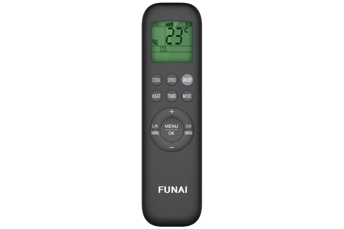 Беспроводной пульт управления оснащён LED-дисплеем, подсветкой и функцией индикации заданной температуры. Он предназначен для управления кондиционером.