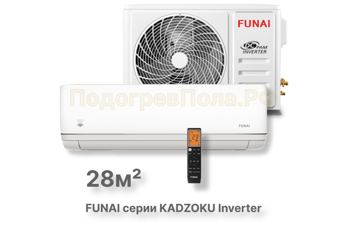 Купить FUNAI Инверторные сплит системы серии KADZOKU Inverter RAC-I-KD30HP.D01 по выгодной цене вы можете в нашем магазине "ПодогревПола.Рф" в г. Москве.